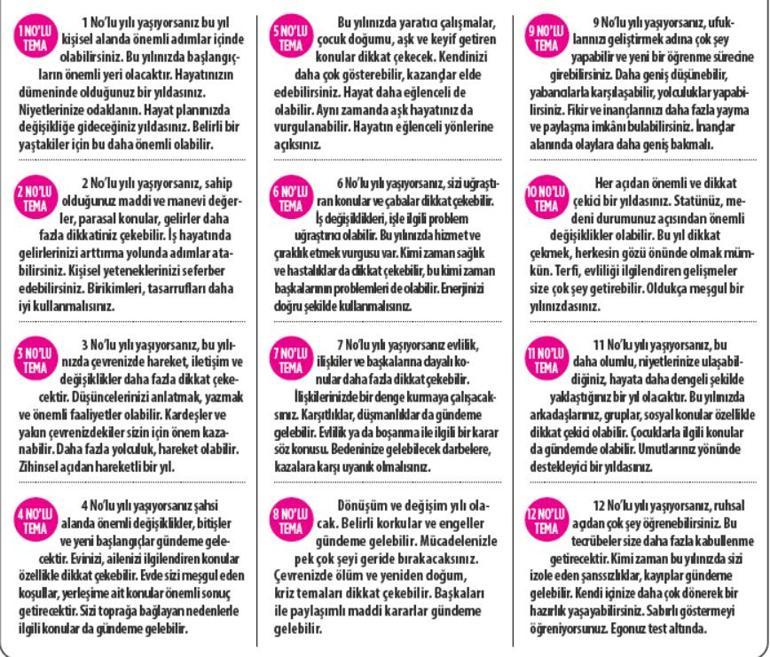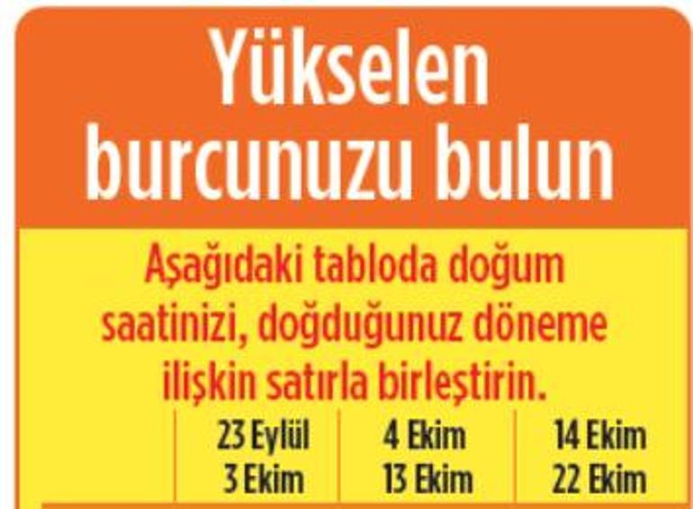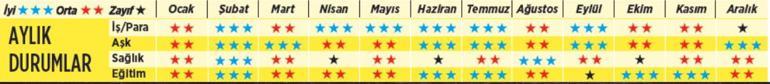 ÖNEMLİ NOT: Yıllık horoskobunuzu okurken, mutlaka yükselen burcunuzu da okuyunuz.