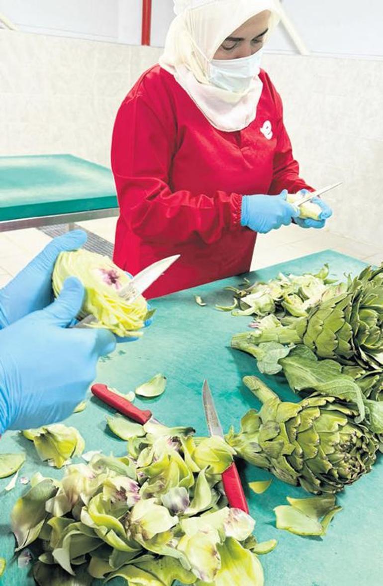 fabrikada çalıştığını ifade eden Nebahat Kahraman, günde 400-500’lere yakın enginar çanağı çıkardıklarını anlatırken, Birsen Kuştaş da sezonla birlikle enginarı işlemeye başladıklarını söylüyor.