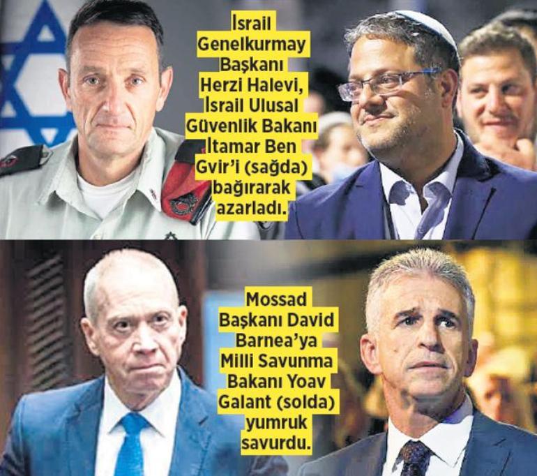 İsrail Savunma Bakanı Yoav Galant ise Mossad Şefi David Barnea’ya yumruk savuruyor. (Şu satırlar yazılırken bu haber medyada dolaşıma girmişti ve henüz bir yalanlama gelmemişti. Yalanlama gelseydi bile ne derece inandırıcı olurdu!)